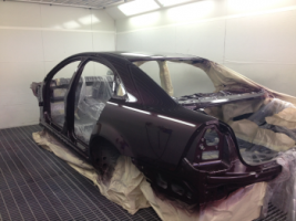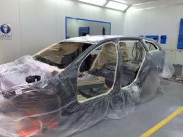 Once the inner areas of the body have fully dried the paint technicians move on to the outer areas. This includes all the areas that are visible when the vehicle is fully assembled. With the outer areas prepared for paint the paint technician takes the time to carefully clean and inspect the surface to ensure a perfect finish. The vehicle is masked to stop paint from going on to unwanted areas and moved into a spray painting oven. Using Personal Protective Equipment like air-fed breathing masks and 'spray suits' the paint technician systematically applies several coats of colour base coat to the job. They will pay careful attention to new parts of repaired parts to make sure there is adequate paint coverage. During this process they also blend the paint colour into the existing vehicle colour. The paint technician then inspects the final colour application for consistency and allows the colour to fully dry. The next step is to apply a protective clear coat to the whole job. Several coats are applied with meticulous detail to replicate the finish achieved by the factory. The 'peel' (textured look of the paint finish) can vary greatly between manufacturers and the paint technician will configure the equipment and technique to best replicate a matching finish. After all of that they allow the paint to bake in the bake oven for a short while to speed up the drying/chemical reaction to harden the paint finish. We use PPG Envirobase water-borne paint system which is an environmentally friendly alternative to solvent based paints.