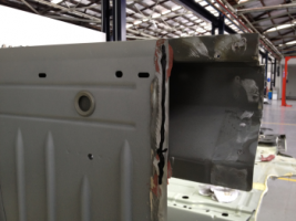 The process of removing the welded panels often leaves the matting surface requiring minor clean up work. The technician will straighten edges and lightly grind the matting surface on both the vehicle and also the new Uniside part. For successful welding, both matting surfaces of the vehicle body and the new uniside part must be cleaned back to bare metal. On the inner matting surfaces the technician will apply an appropriate weld through primer/protective coating to prevent oxidisation issues in the future. On certain surfaces Holden also specifies the use of a special Structural Adhesive be applied in conjunction with welding.